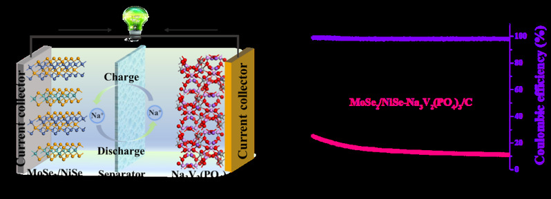 进一步,使用MoSe2/NiSe异质结材料组装的全电池(MoSe2/NiSe‖Na3V2(PO4)3/C)也表现出了较长的循环寿命,在1 A g-1下进行200次循环后,容量仍然有168 mAh g-1,如图3所示。这项工作充分表明,异质结材料可以扩展到其他领域,这有助于开发用于快速动力学和长循环寿命的钠离子电池。
