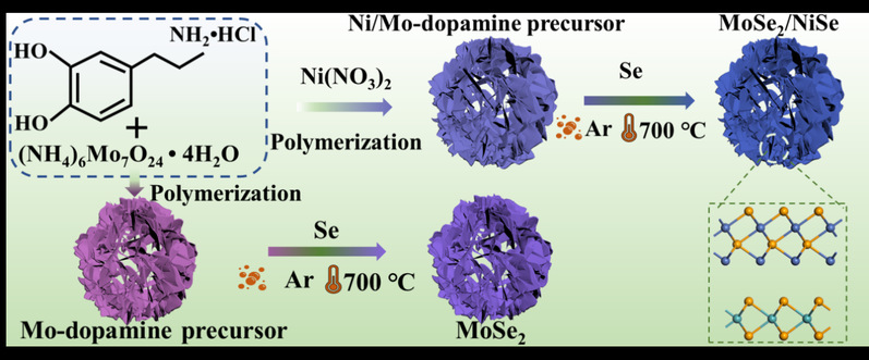 图1 MoSe2/NiSe异质结以及MoSe2的制备流程图